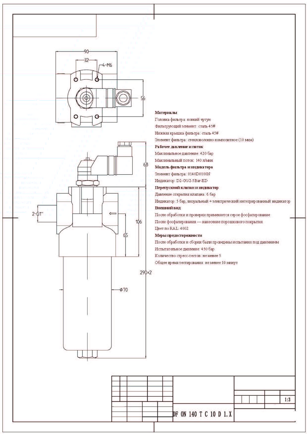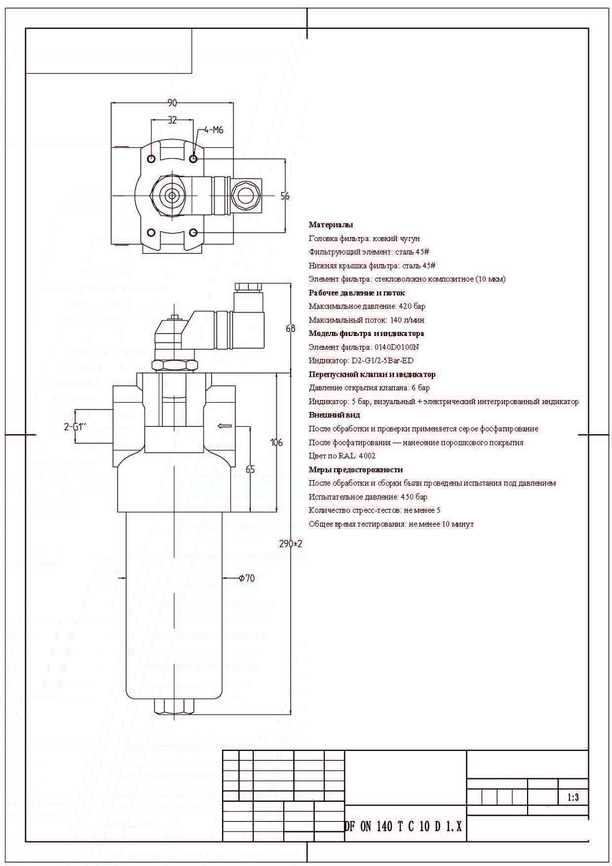 Фильтр напорный DF BN/Н С 140T C 10D1 Filter Пропускная способность 150 л/мин Давление 420 бар Порт 1"