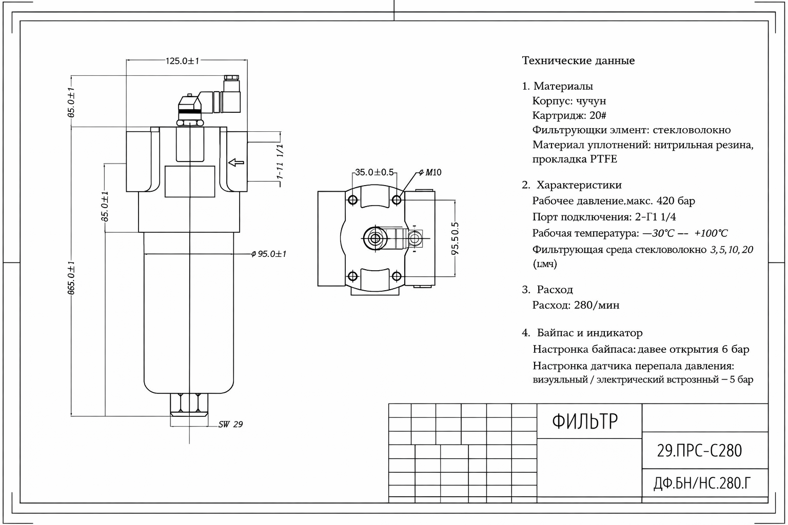Фильтр напорный DF BN/Н С 280T C 10D1 Filter Пропускная способность 200 л/мин Давление 420 бар Порт 1 1/4"