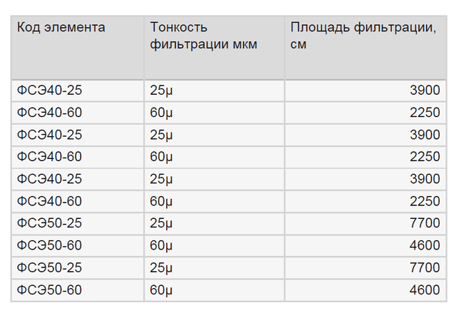 Эффективность фильтрации 98% для 25 мкм - 99% для 60 мкм